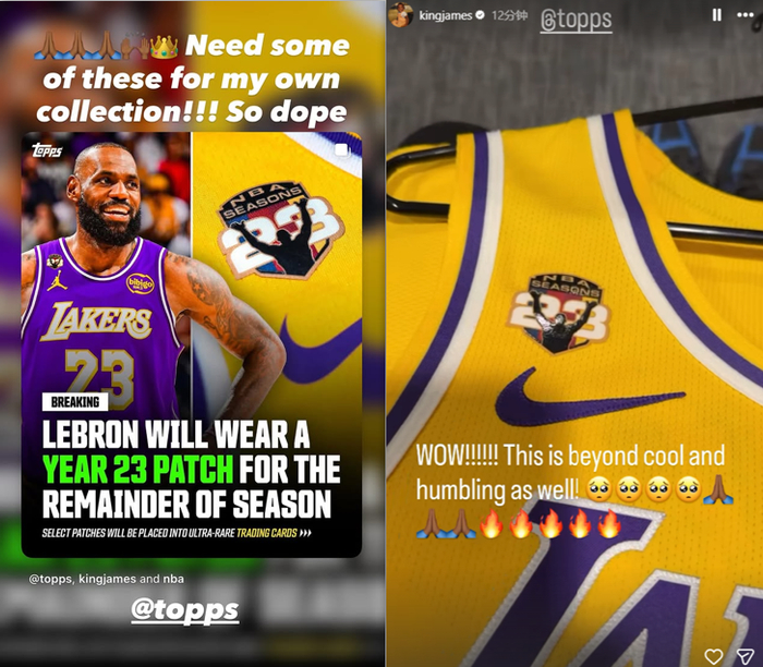 之后詹姆斯在社媒上首次展示这个配有纪念臂章的23号紫金战袍,配文写道:哇哦,太酷了,也让我感到无比荣幸!(4个感动落泪的表情)。